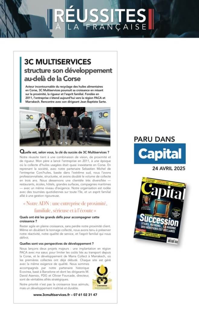 3C Multiservice est numéro 1 en Corse pour la récolte d’huiles alimentaires usagées !